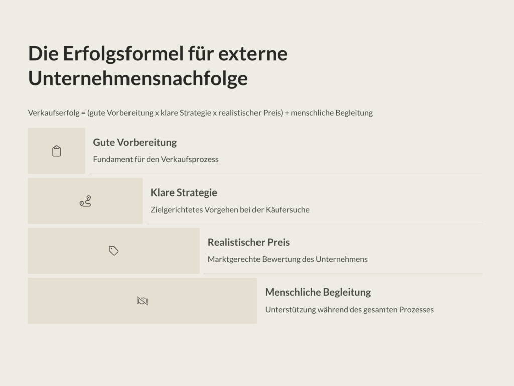 Diese Formel bringt auf den Punkt, was Nachfolgeprozesse erfolgreich macht – unabhängig von Branche oder Unternehmensgröße.